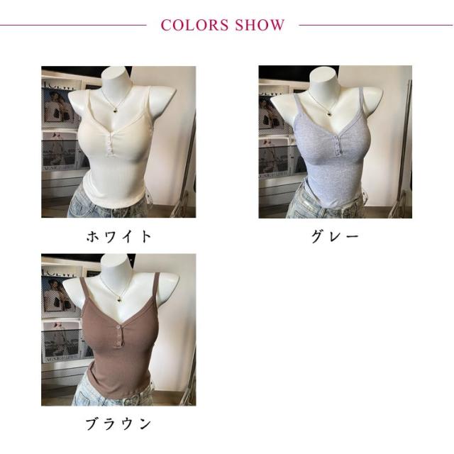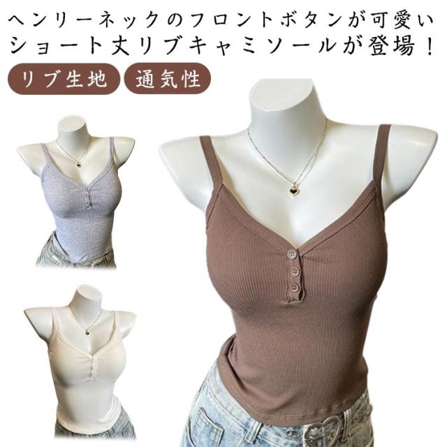 スリム ブラキャミ 通気性 インナー ヘンリーネック キャミソール カップ付き レディース 下着 フロントボタン ブラトップ ブラジャー ブラキャミソール パッド タンクトップ 透けない 蒸れない リブ 細身 ストレッチ 春 夏 秋 大人可愛い