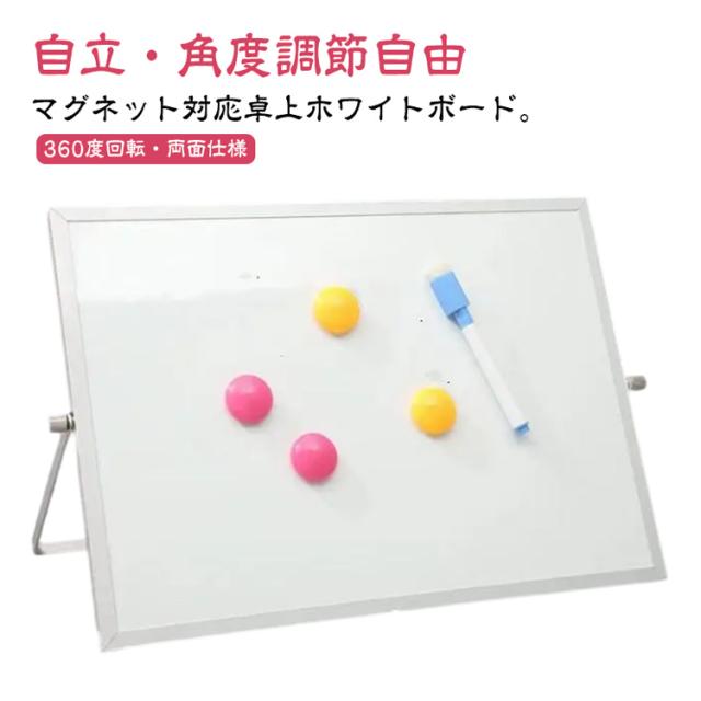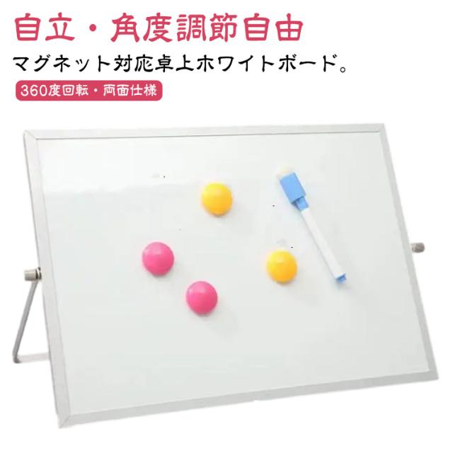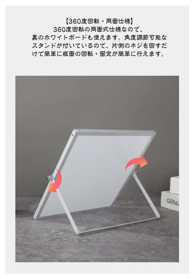 360度回転 小型 両面 メモボード 自立式 メッセージボード ホワイトボード 卓上 マグネット対応 卓上 メモ お絵かき ホワイトボード 伝言板 掲示板 スタンド付き マーカー付き 2点セット オフィス 学生