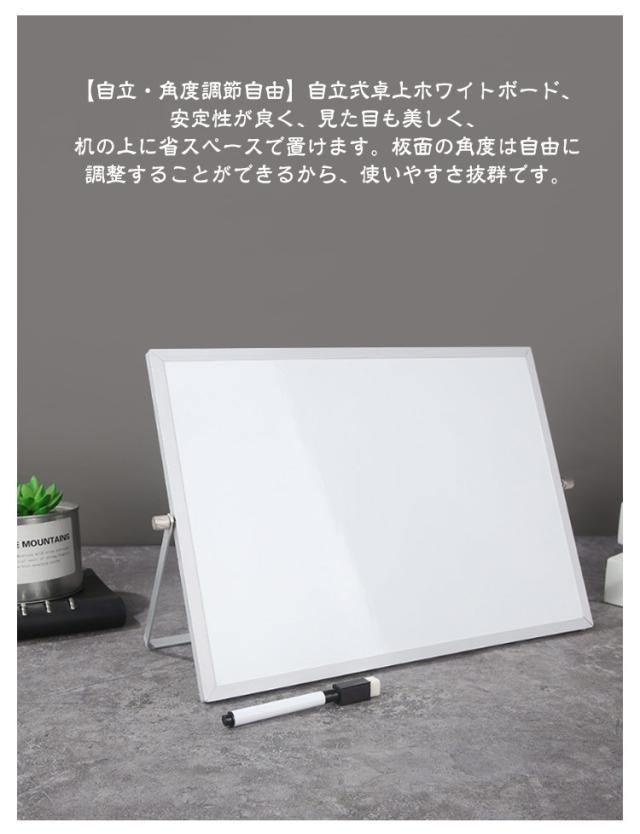| マグネット対応卓上ホワイトボード。 【自立・角度調節自由】自立式卓上ホワイトボード、安定性が良く、見た目も美しく、机の上に省スペースで置けます。板面の角度は自由に調整することができるから、使いやすさ抜群です。 【360度回転・両面仕様】360度回転の両面式仕様なので、裏のホワイトボードも使えます。角度調節可能なスタンドが付いているので、片側のネジを回すだけで簡単に板面の回転・固定が簡単に行えます。 【マグネット対応】ホワイトボードの板面はマグネット対応で、写真や資料などを貼り付けることができます。 【小型・軽量】ホワイトボードはスタンドタイプ、軽い小さめサイズで、場所を取らずどこでも気楽に描けます。 【優れた素材】表面は滑らかで消しやすいため、簡単に拭いて文字が消えます。 【多用途】ご家族の伝言板や高齢者のもの忘れ対策、学校や塾、セミナーでのグループディスカッション後の発表用ボードなど様々な場面で活躍できます。 | |