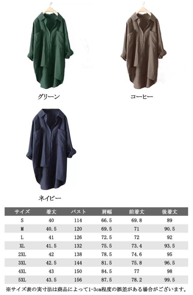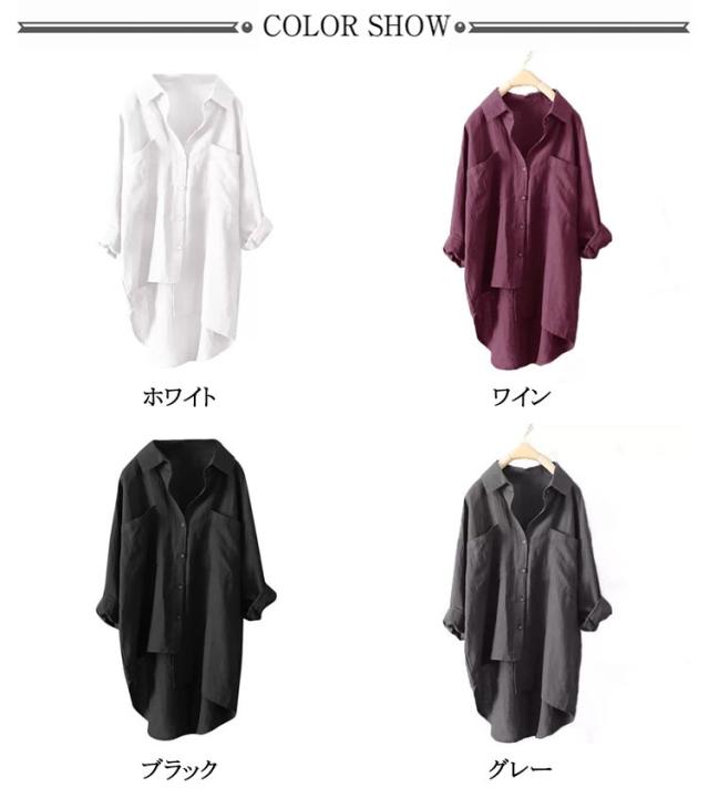 無地 レディース リネンシャツ 前後差 リネンシャツ 麻 リネン トップス ラウンド裾 送料無料 ビッグシルエット オーバーサイズ 羽織り ホワイト ワイン ブラック グレー グリーン コーヒー ネイビー
