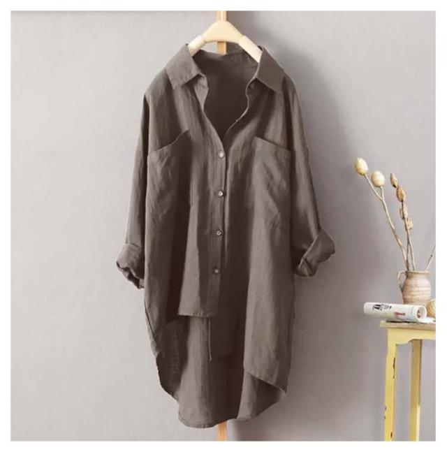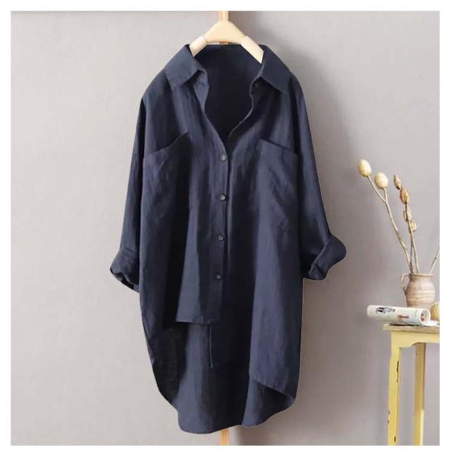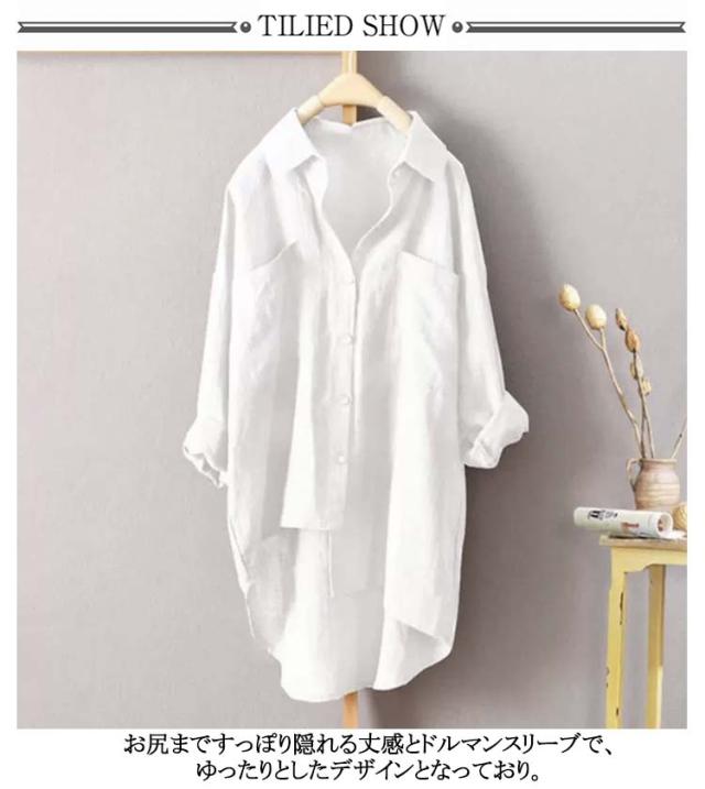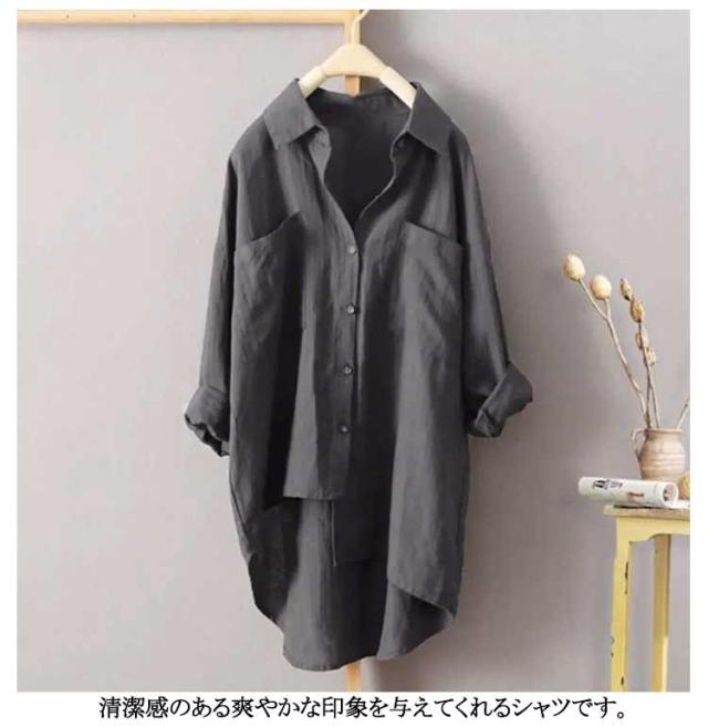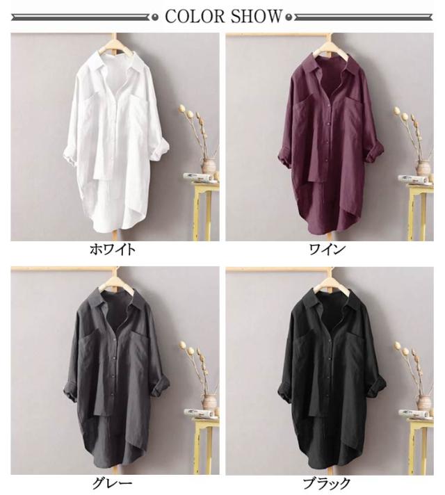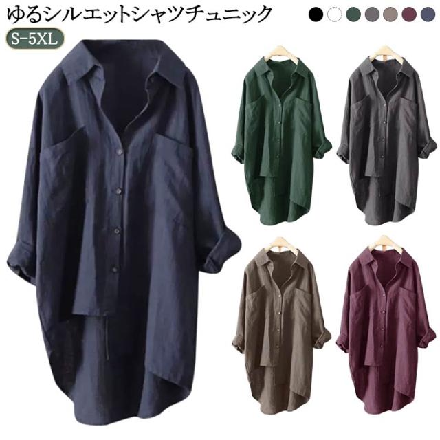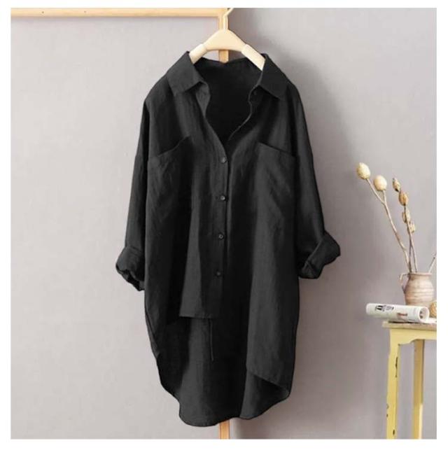 ゆったり ロングシャツ 彼シャツ チュニック ブラウス レディース 風 トップス チュニック シャツ 長袖 リネン 無地 羽織 ライトアウター ドルマン リネン 大きいサイズ 体型カバー 黒 春 夏