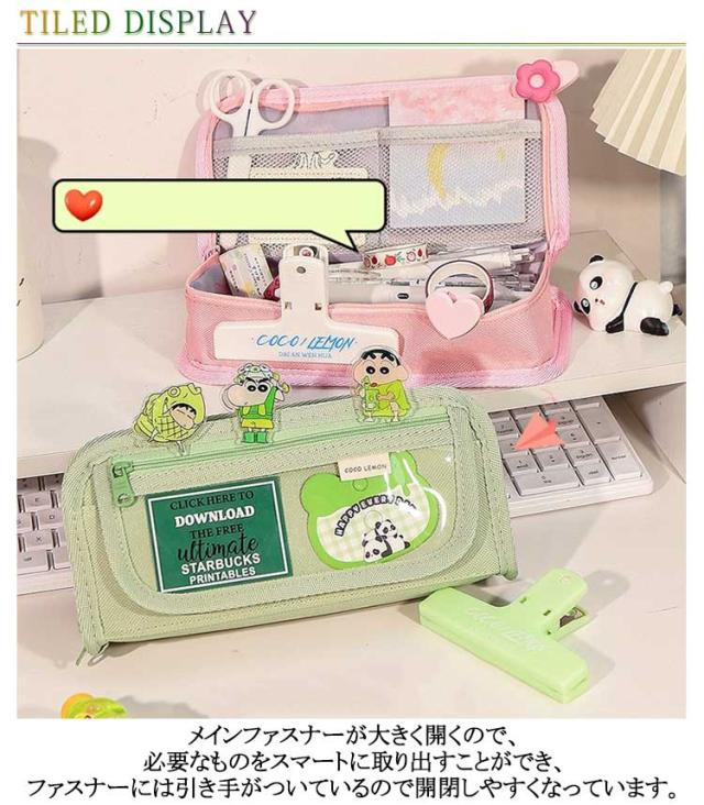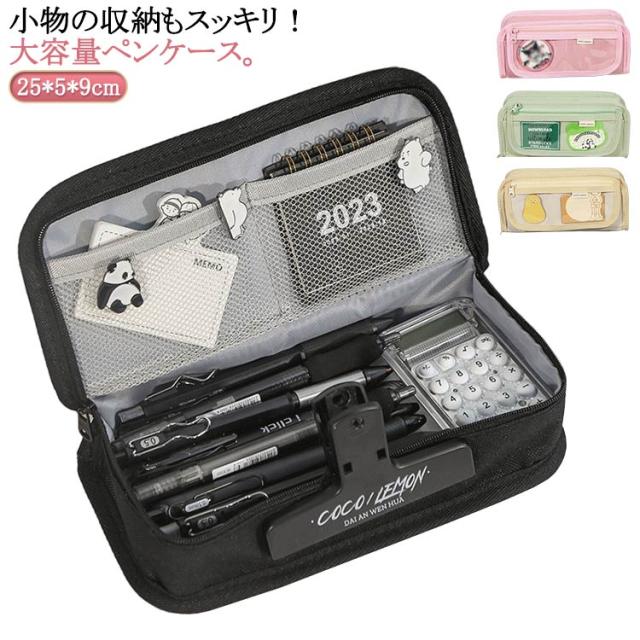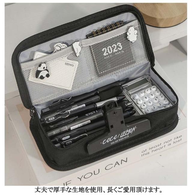 | 小物の収納もスッキリ!大容量ペンケース。 仕切りタイプだから消しゴムや付箋、クリップなど小物を別々入れることができます。 丈夫で厚手な生地を使用、長くご愛用頂けます。 メインファスナーが大きく開くので、必要なものをスマートに取り出すことができ、ファスナーには引き手がついているので開閉しやすくなっています。 使い方いろいろ、メイクポーチにも便利、コンパクトだから旅行にもgood! シンプルで使いやすいデザインで学生から社会人にも使える優秀アイテムです。 | |