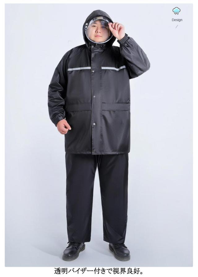 ビッグサイズ レインウェア ビッグサイズ 作業着 上下セット 大きいサイズ メンズ レディース レインスーツ ジャケット 長袖 アウトドア ロングパンツ 二重透明バイザー付き 梅雨 バイク 防水 防災 自転車 反射テープ付き 通学 通勤 豪雨 レインコート メッシュ裏地 カッパ