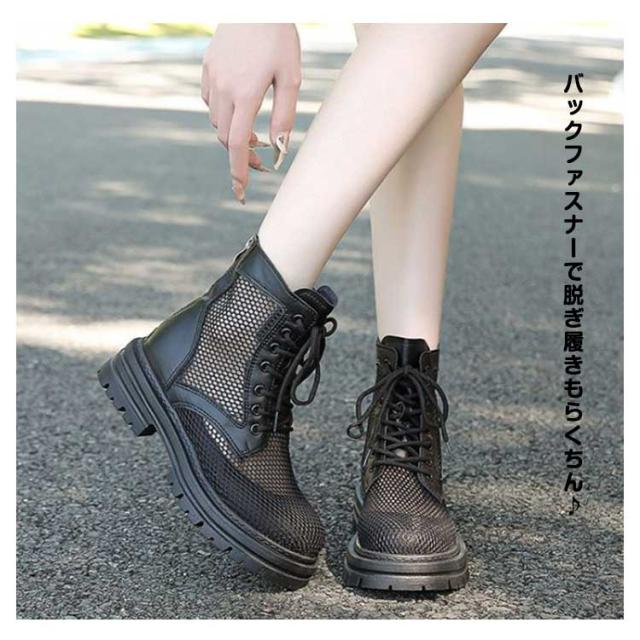ショートブーツ レディース 厚底 サマーブーツ 夏 軽量 透け感 ブーツ ヒール5cm かわいい 太いヒール ミドルブーツ メッシュ ブーティ 美脚 春 秋 ブーツ チャンキーヒール 疲れにくい 靴 カジュアル 痛くない 歩きやすい