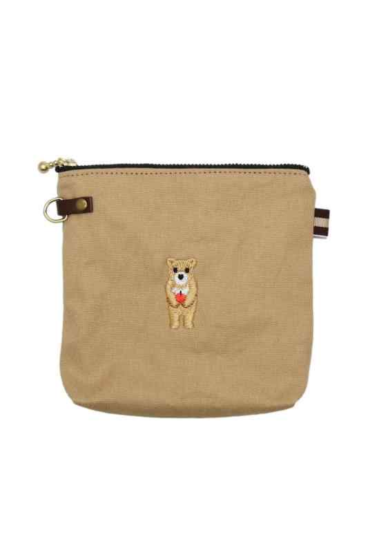 キャメル 保冷保温ポーチ おやつポーチ 刺繍 帆布