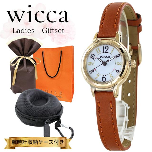 ラッピング済 ギフトセット シチズン ウィッカ wicca 正規品 ソーラー腕時計 腕時計ケース付き レディース ブラウン 革ベルト 軽い かわいい 腕時計 手表 防水 高校生 大学生 誕生日 プレゼント 女性 彼女 学生 就職 社会人 還暦 実用的 ギフト