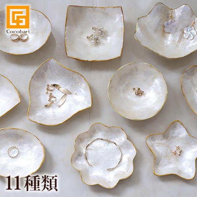 天然のカピスシェルのトレイです。デザインを選ぶのが楽しい全11種類。 貝殻を薄くスライスして貼り合わせて作る手間のかかる一品。 さらにゴールドの縁が高級感をプラス。