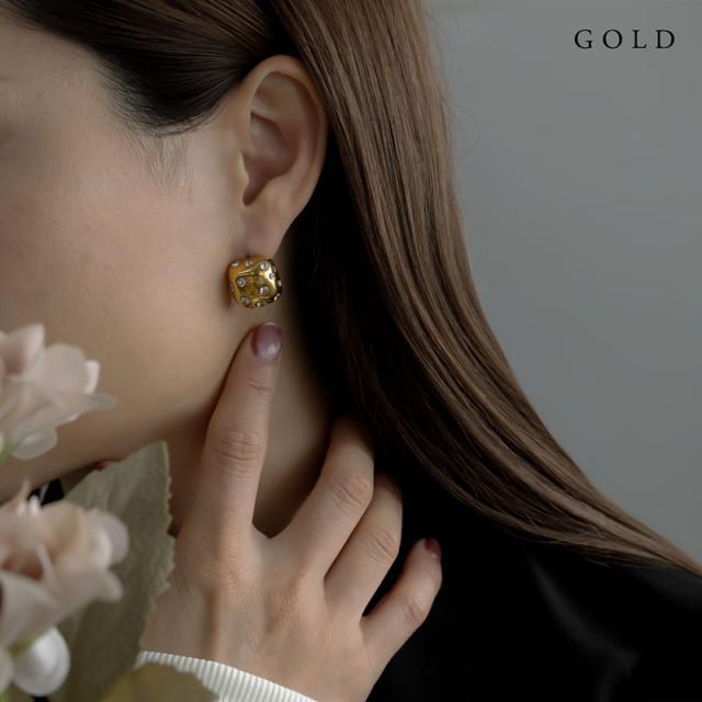ピアス ステンレス サージカルステンレス レディース 金属アレルギー ドット ストーン スクエア シルバー ゴールド 大ぶり つけっぱなし シンプル 普段使い 大人 かわいい オフィス オシャレ 女性