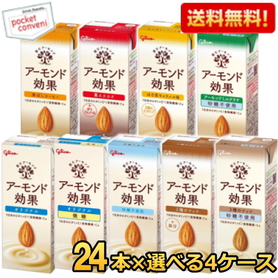 【送料無料】 グリコ乳業 アーモンド効果 200ml紙パック 選べる96本セット(24本×4ケース) アーモンドミルク 砂糖不使用 コーヒー