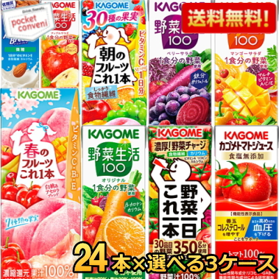 【送料無料】 カゴメ200ml紙パック選べる3ケース 計72本セット 野菜ジュース トマトジュース 野菜生活100 アーモンドブリーズ