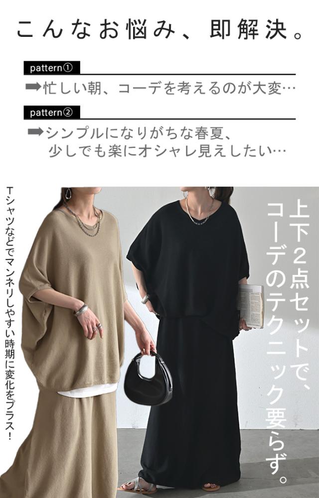 セットアップ 2点セット 上下セット 二点セット セットアップコーデ 半袖T 半袖Tシャツ ティシャツ ティーシャツ 袖あり ロングTシャツ ロングティーシャツ ロングティシャツ ロングトップス ロングT ロングカットソー ティーシャツロング ビッグT ビッグTシャツ ビックT ビックTシャツ 二の腕カバー 二の腕隠し デザイン デザインT デザインTシャツ デザインティーシャツ ゆるT ルーズ ルーズT ルーズTシャツ ルーズティー ルーズティーシャツ チュニックTシャツ チュニックティーシャツ チュニック丈 チュニック丈Tシャツ チュニック丈T ミディアム ミディアム丈 ミドル ミドル丈 ロング丈 ロング丈Tシャツ ロング丈T ロング丈ティーシャツ ロング丈カットソー ストレッチ 伸縮性 伸縮 白T 無地T すっきり スッキリ ドロップショルダー コクーン コクーンシルエット コクーンT コクーンTシャツ コクーンカットソー 太もも 太ももカバー ボトムス ボトム フレア フレアスカート マキシ マキシスカート タイト タイトスカート ロングニットスカート ニットロングスカート ナロースカート ロング丈 ロング丈スカート ロング丈タイトスカート マキシ丈 マキシ丈スカート Aライン Aラインスカート パネル パネルスカート ボリューム ボリューミー ボリュームスカート バルーン バルーンスカート ドレープ ドレープスカート Iライン Iラインスカート ペンシルスカート ペンシル ストレート ストレートスカート コンパクト タイトロングスカート 落ち感 10分丈 膝下 ひざ下 膝下スカート ミモレ ミモレ丈 ミディアム ミディアム丈 ゴムウエスト ゴムウェスト ウエストゴム ウェストゴム ゴム ウエスト ウェスト ハイウエスト ハイウェスト ハイウエストスカート ハイウェストスカート 紐 ヒモ ひも スポーツ スポーティー スポーティ ストリート すっきり スッキリ 細見え 伸縮性 伸縮 ストレッチ 美脚 脚長 脚長効果 スタイルアップ イージー リラックススカート リラックスボトム リラックス ルームウエア ルームウェア 部屋着 ワンマイル ワンマイルウエア ワンマイルウェア フェミニン ガーリー デート トール丈 トール トールサイズ 長い 長め 高身長 170cm 175cm 180cm ニット セーター オーバー プルオーバー 鹿の子ニット 鹿の子セーター 鹿の子プルオーバー 鹿子 鹿子ニット 鹿子セーター 鹿子プルオーバー かのこ かのこニット かのこセーター かのこプルオーバー カノコ カノコニット カノコセーター カノコプルオーバー ハイゲージ ハイゲージニット ハイゲージセーター ハイゲージプルオーバー レイヤードニット リブニット ライトニット ニットウェア ニットウエア ニットプルオーバー カットソー 編み地 編み 編みニット ボリューム ボリュームニット ビッグニット ビックニット オーバーニット オーバーセーター ニットトップス ロングニット ロングセーター ロング 長い 長め チクチクしない ちくちくしない チュニック チュニック丈 チュニック丈ニット チュニック丈セーター リブ リブ 袖口リブ リブ袖 リブ仕様 ミディアム ミディアム丈 ミドル ミドル丈 ドロップショルダー 柔らかい ドルマントップス ドルマン ドルマン袖 ドルマンスリーブ ドルマンスリーヴ ぽわん ポワン ぽわん袖 ポワン袖 フレア袖 バルーン袖 バルーンスリーブ ボリューム袖 ボリュームスリーブ パフ袖 パフスリーブ ラクチン らくちん 楽ちん 楽 動きやすい ゆったり ゆる ゆったりサイズ ゆるカジ ゆるい ゆるファッション フリーサイズ フリー S M L LL 2L XL 3L XXL LLL ブラック 黒 黒色 ベージュ レイヤード 重ね着 重ね レイヤードコーデ 体型カバー 二の腕カバー 二の腕隠し 着痩せ 着回し お尻が隠れる 大きい 大きめ 大き目 プラスサイズ 大きいサイズ ビッグ ビック big ビックシルエット ビッグシルエット ビックサイズ ビッグサイズ オーバーサイズ オーバー カジュアル ナチュラル 大人カジュアル レディースファッション ベーシック オフィス オフィスカジュアル テレワーク リモートワーク リモート オンライン飲み会 韓国ファッション 韓国風 韓国 ストリート おうち時間 お家時間 デート お出かけ フェス リゾート ビーチ 海 旅行 飛行機 パーティー パーティ 着回し 母の日 プレゼント ギフト 贈り物 クリスマス シンプル 大人 オトナ 大人カジュアル オフィスカジュアル オフィス レディースファッション 女性 綺麗 綺麗目 きれい キレイ キレイめ キレイメ きれいめ 高見え 上質 上品 ゆる ゆったり 旬 トレンド 20代 30代 40代 50代 60代 おしゃれ お洒落 オシャレ 可愛い かわいい カワイイ カッコいい 格好良い カッコイイ 春 夏 秋 冬 春夏 秋冬 HUG.U HUGU ハグユー はぐゆー