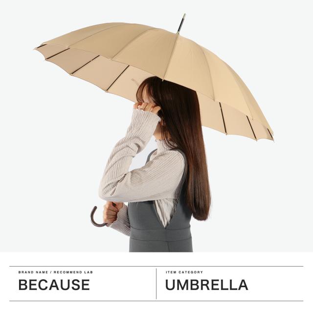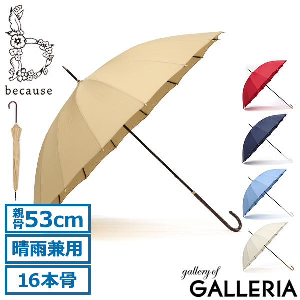 【商品レビューで+5%】because 傘 レディース かさ 雨傘 日傘 長傘 ビコーズ 軽い 軽量 ブランド 晴雨兼用 大きめ 手動 手開き式 手開き おしゃれ 53 53センチ 53cm 16本 UVカット B-134416