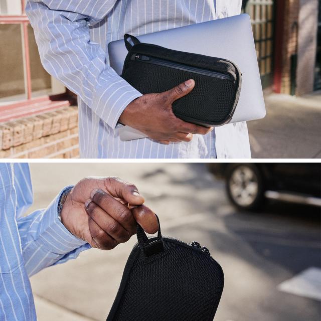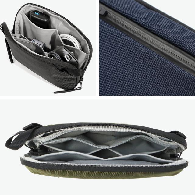 スリムで持ち運びやすく必需品をスマートに整理することができるポーチ。複数のポケットや中のモノが見やすいワイドな開き口でパッキングもスムーズに。また、素材には耐久性に優れた1680Dコーデュラバリスティックナイロンを採用し、タフに気兼ねなく使えるのもポイントです。