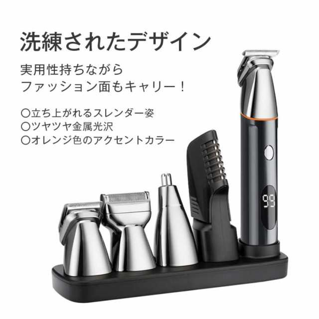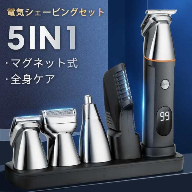 冬新作 送料無料 バリカン 体毛トリマー ボディシェーバー メンズ 電動バリカン 1台5役 多機能セット USB充電式 LEDディスプレイ ヘアカッター 髭剃り IPX7防水 水洗い 鼻毛カッター