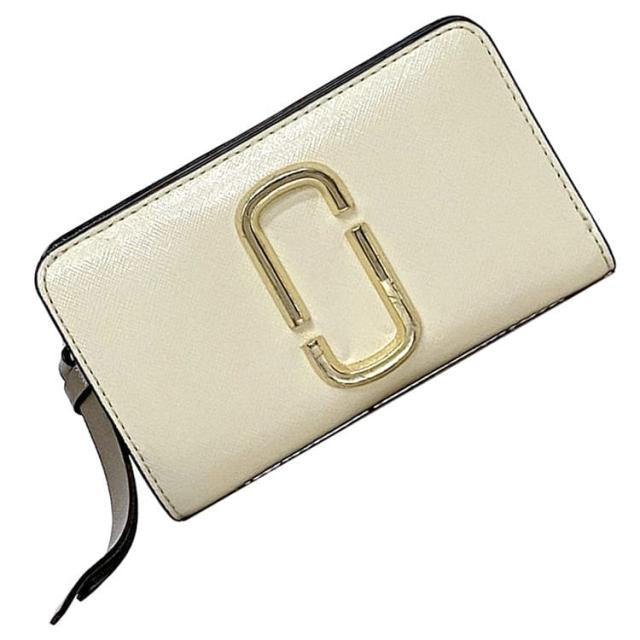 マークジェイコブス 二つ折り 財布 ec-22672 ホワイト ブラック スナップショット 美品 レザー 中古 MARC JACOBS ホック L字 ファスナー コンパクト ミニ お洒落 定番 人気 箱付き 女性 レディース 革 小物 ウォレット エレガント 上品 ブランド 本物 鑑定済み