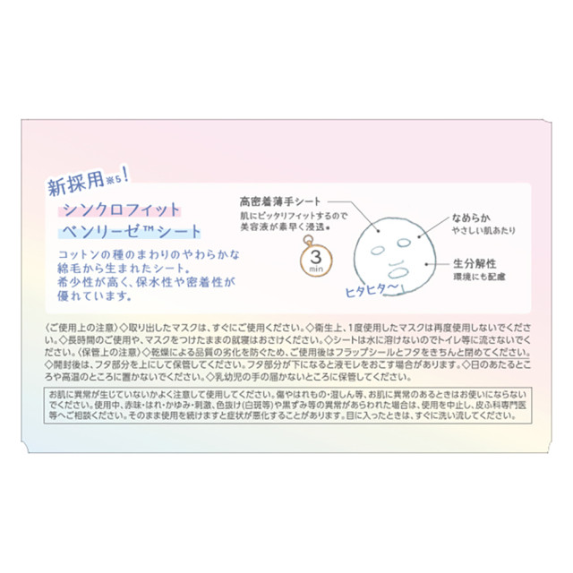 高密着薄手シート使用で、化粧水代わりの3分ケアできるデイリータイプ。