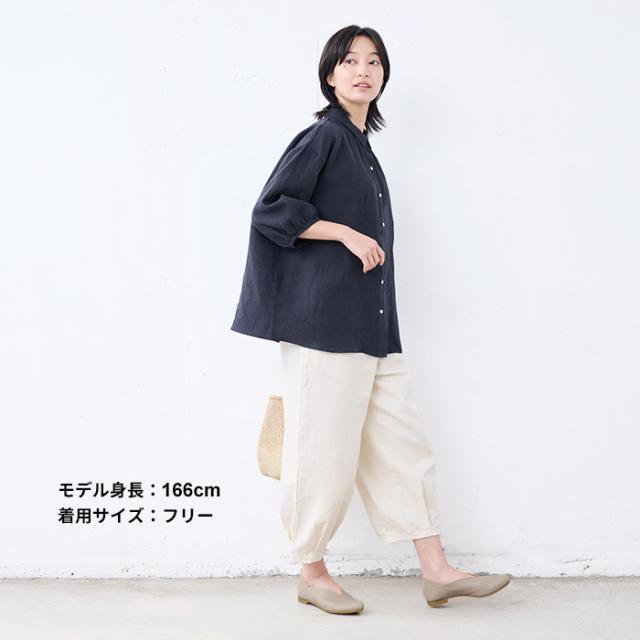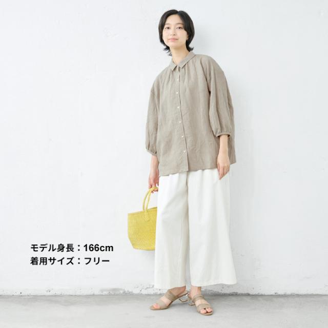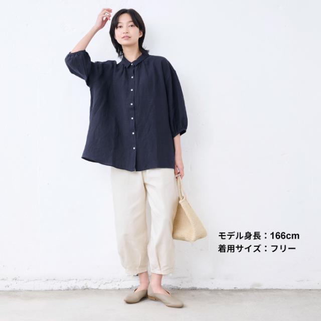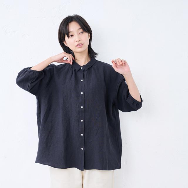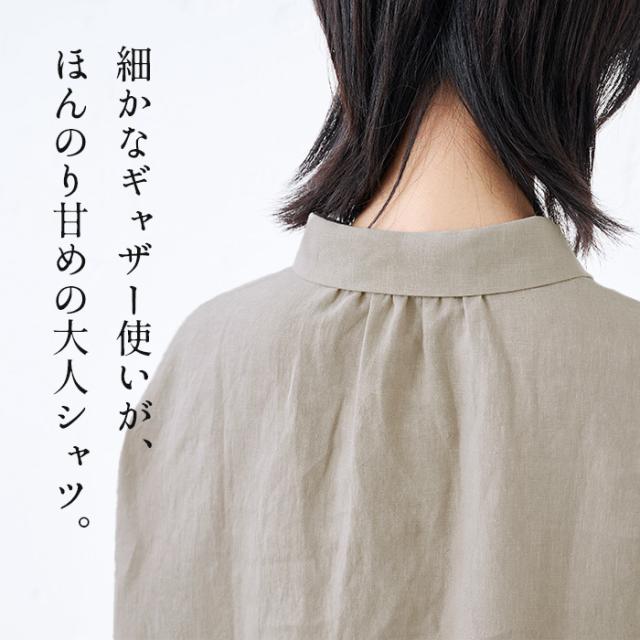 40番手フレンチリネン100% ギャザー使いシャツ