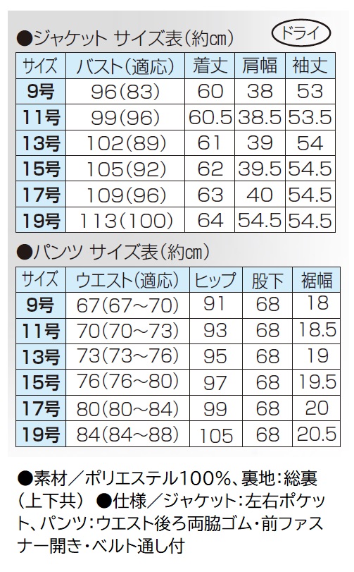 ●素材/ポリエステル100%、裏地:総裏(上下共)