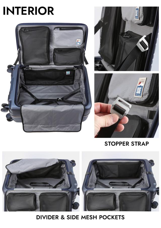 抗菌・防臭加工が施された内装生地は、しっとりとした柔らかい肌触り。シャカシャカした安っぽい素材感ではなく、生地のしっかり感を感じられる点も、旅の充実感をサポートしてくれます。日本製のスーツケースというと有名なブランドもありますが、この装備内容でこの価格設定はメーカーさんの努力を強く感じます。