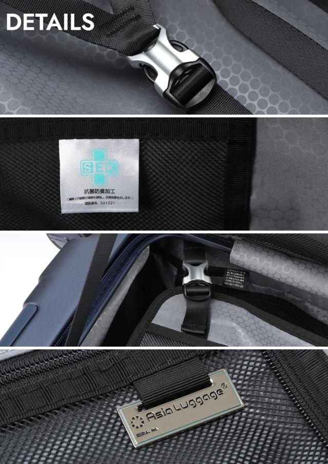 | 高剛性リベットレスフレームを採用した、横開きのフロントオープンキャリー。カバー付属で傷や汚れからスーツケースを守ります。パーツ交換を対象とした10年間の無償修理保証対象製品。日本製ならではの高品質と細部へのこだわり。実績のある信頼性に優れたパーツを各処に採用。長年スーツケースの企画生産を手掛けてきたアジアラゲージだからこそできる、使い心地の良さが込められています。 ●メイドインジャパン(日本製) ●10年保証対象製品 ●横開き フロントオープン ●双輪4ホイール ●60mm径 静音ダブルキャスター(HINOMOTO Silent Run) ●純度100% ポリカーボネートボディ ●ワンタッチ ホイールロックスイッチ(前輪キャスターストッパー) ●YKKファスナー(WOVEN-IN TOUGH ZIPPER) ●TSロック(4桁ダイヤルロック) ●内装生地 抗菌防臭加工(SEK基準) ●受託手荷物規定内 最大サイズ ●スーツケースカバー付属 |