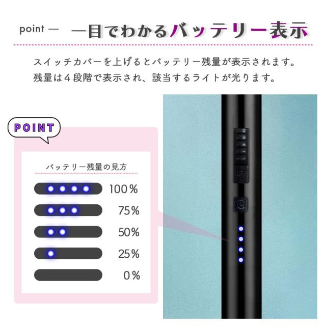 スイッチカバーを上げるとバッテリー残量が表示されます。