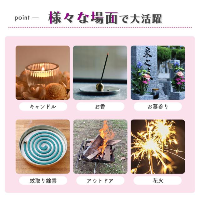 キャンドル、お香、お墓参り、蚊取り線香、アウトドア、花火など