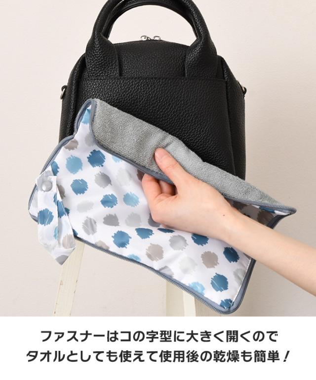 ファスナーはコの字型に大きく開くので、タオルとしても使えて