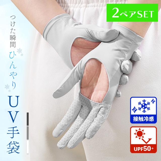 接触冷感 手袋 アームカバー 2ペア 3色選べる UPF50+ 指先まで UVカット UV 紫外線 日焼け防止 手袋 春 夏 カバー 冷たい 冷感 涼しい ゴム ゆったり 夏用 SPF ブラック グレー ホワイト 滑り止め アイスシルク スマホ 手