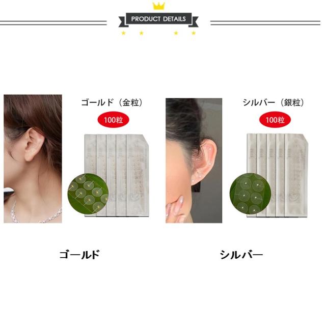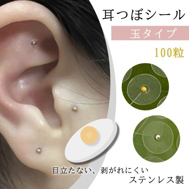 耳つぼシール 粒タイプ 100粒 金属アレルギー対応 ステンレス製 耳つぼジュエリー 金粒 銀粒 美容 ダイエット 母の日 プレゼント 敬老の日 プレゼント