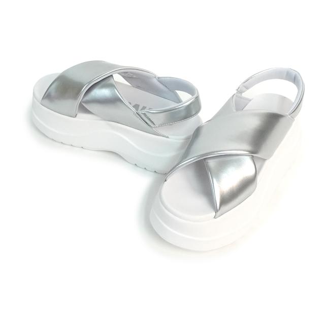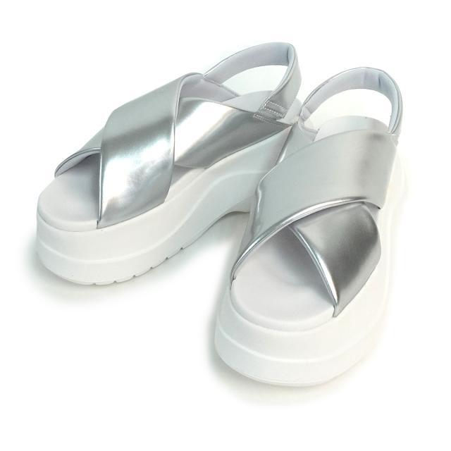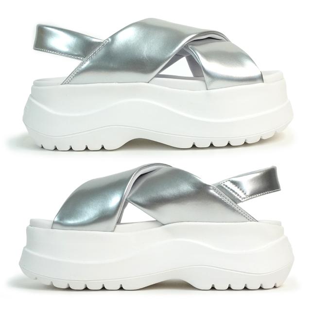 ボリュームのある厚底ソールとクロスベルトがエレガントなデザインで、幅広いコーディネートに取り入れられる一足。