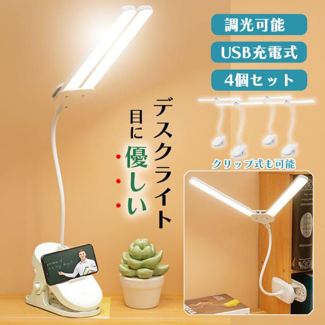 クリップライト デスクライト 4個セット 読書灯 学習机 LED 目に優しい 調光可能 勉強 おしゃれ 読書 シンプル クリップ式 置き型 充電式 USB 卓上ライト LEDライト 仕事 寝室 卓上 ベッドライト 常夜灯 寝室 台所 防犯グッズ 照明 節電 省エネ