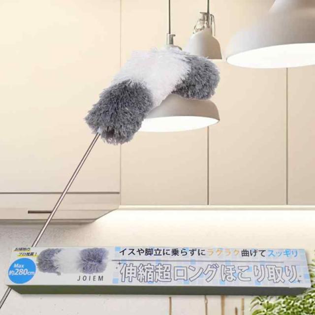 ほこりとり ハンディモップ 【お掃除のプロ推薦】 最長280? はたき ホコリ取りブラシ ホコリ取り ブラインド掃除 伸縮 JOIEM (灰白)