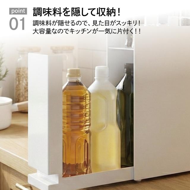 調味料ラック 調味料 油 醤油 引き出し キッチン収納 隙間収納 調味料入れ 調味料ラック 調味料ストッカー マグネット スリム スパイスラック 大容量 コンロ横 ホワイト kitchen-rack04