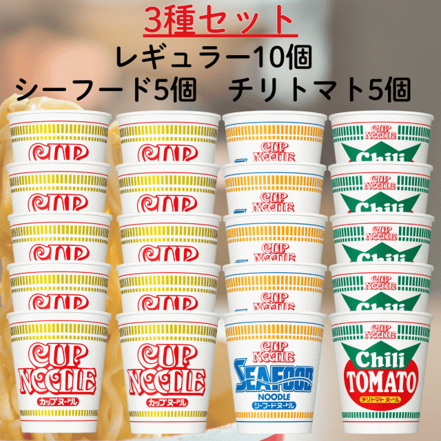 日清 カップヌードル 最短賞味期限2026年5月29日 3種セット レギュラー10個 シーフード5個 チリトマト5個 計20個セット 詰め合わせ まとめ買い 箱買い 箱 ケース 大量 業務用 ランチ レギュラー味 シーフード味 チリトマトヌードル カプヌ ヌードル カップ カップ麺