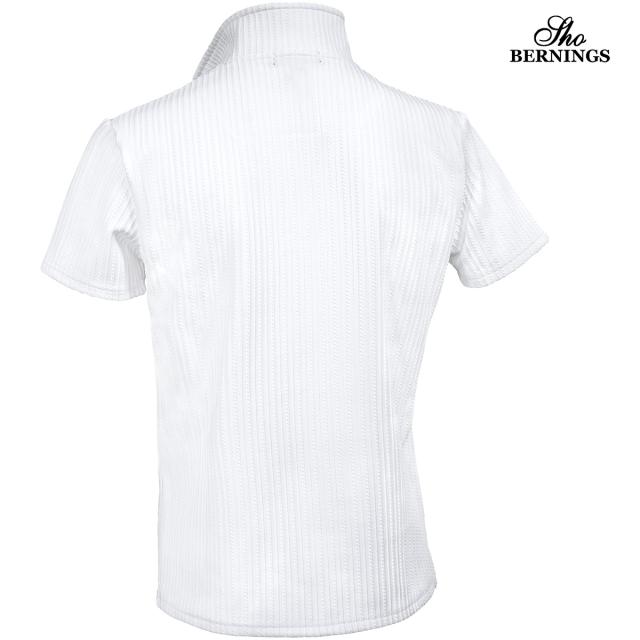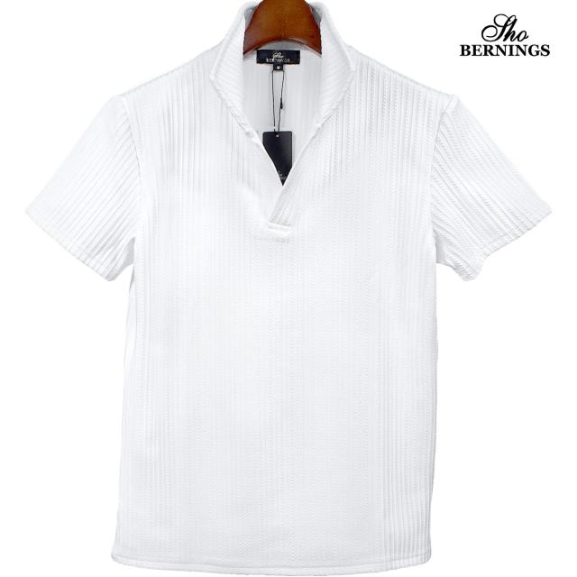 ポロシャツ イタリアンカラー ストライプ柄 メンズ スキッパー 半袖 襟ワイヤー ストレッチ ポロ mens(ホワイト白) 355062