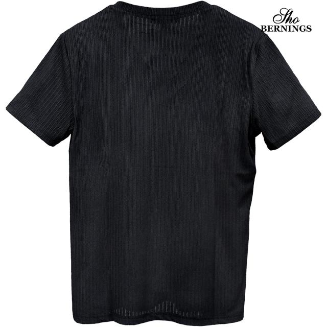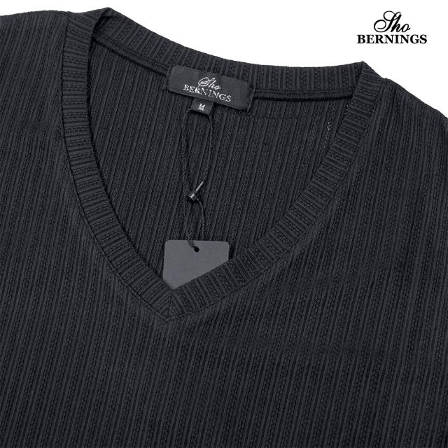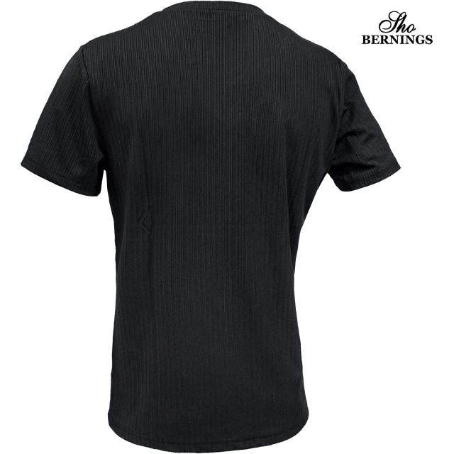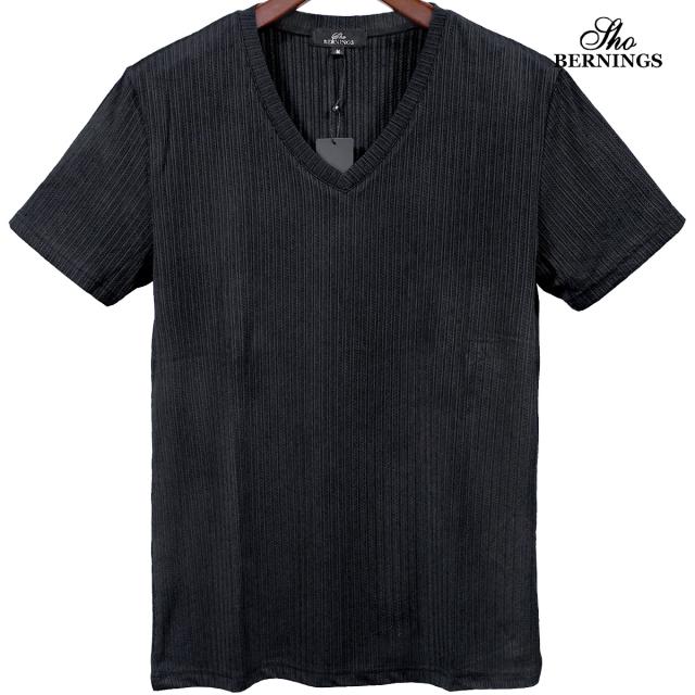 Tシャツ 半袖 Vネック ストライプ柄 メンズ シンプル mens(ブラック黒) 329452