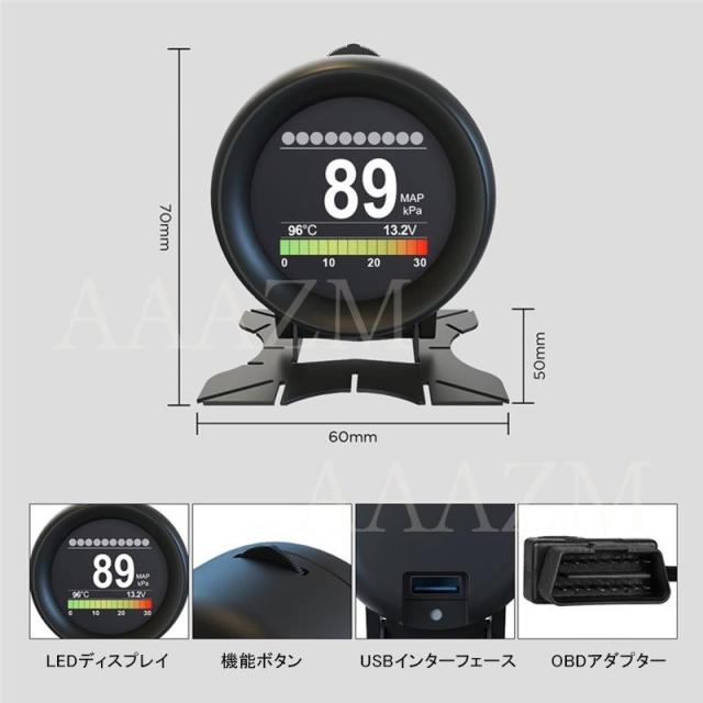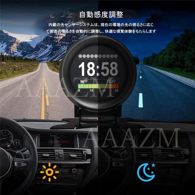 OBD2 追加メーター HUD ヘッドアップディスプレイ 後付け スピードメーター 速度計 水温計 サブメーター 多機能 自動車用 OBDII 増設 デジタルメーター 警告機能