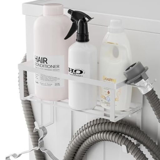 【洗濯機横にすっきり収納】洗濯機の側面に簡単に取り付けできるマグネット式収納ラックで、限られたスペースを有効活用。洗剤や柔軟剤、スプレーボトルなどをスッキリと整理できます。