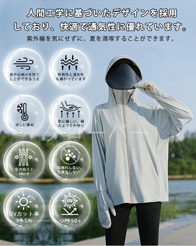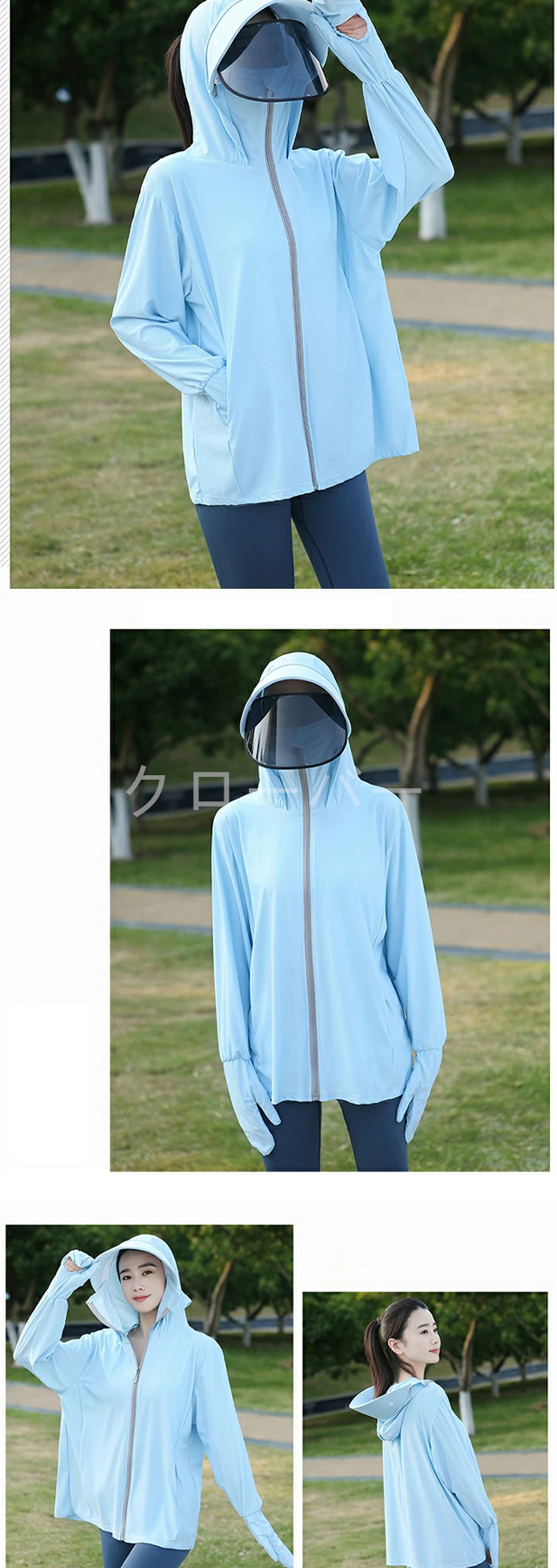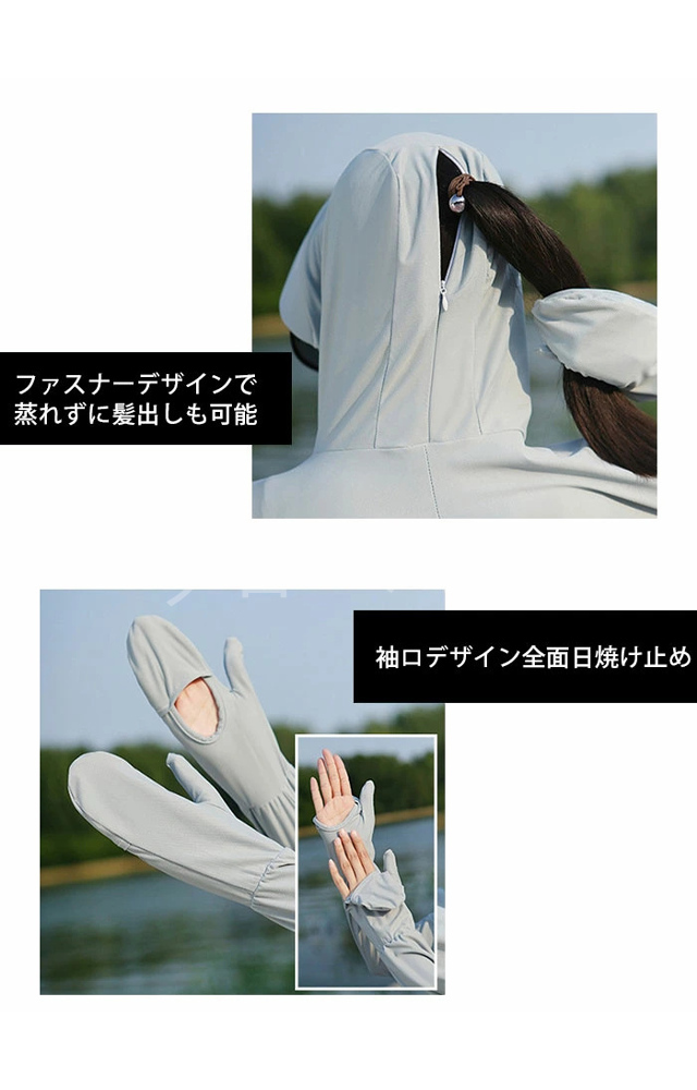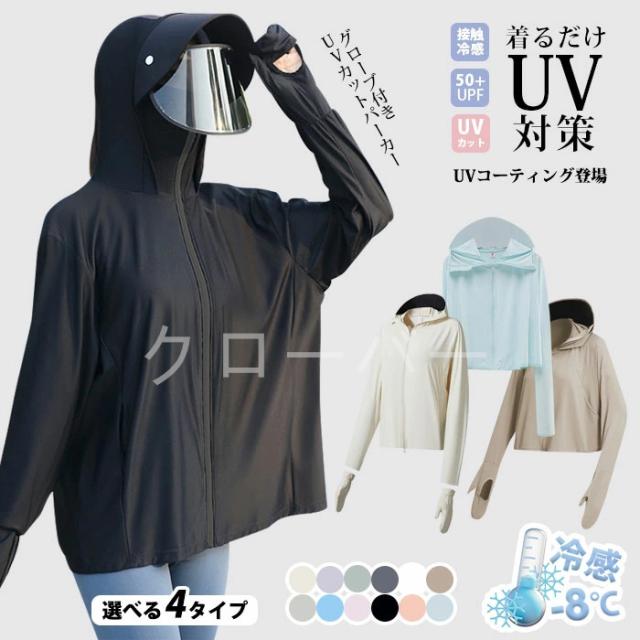 uvカット パーカー uv パーカー レディース uvカット アウター 体感-8° 大きいサイズ 薄手 接触冷感 長袖 ジップアップ uvパーカー 日除け 涼しい 体型カバー 指穴 ストレッチ 遮蔽率99% 360度 グローブ付き