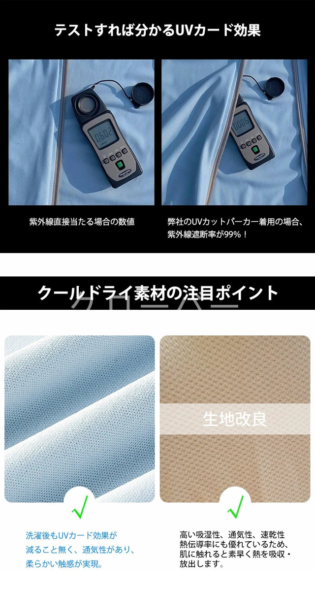 ★「クールドライ素材」UPF+50の紫外線カット機能のあるuvパーカーです。?薄手で速乾性のあるサラサラの着心地で快適に過ごせます。【UV遮蔽率99%以上】日よけ、紫外線対策に欠かせないuvカット加工で前開きファスナーの開閉も楽々な定番ジップアップパーカー。