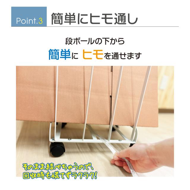 【point3】段ボールの下から簡単にヒモを通せるので、簡単に束ねることができる