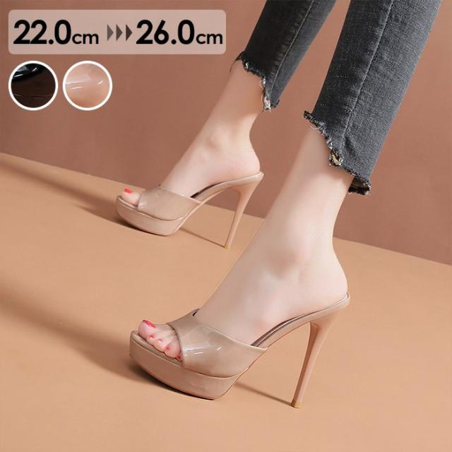 サンダル レディース ハイヒール ミュール ヒールサンダル オープントゥ ピンヒール ヒール12cm ブラック 黒 ベージュ 大きいサイズ 小さいサイズ 可愛い きれいめ 春 夏 靴 女性 大人 つっかけ シューズ シンプル