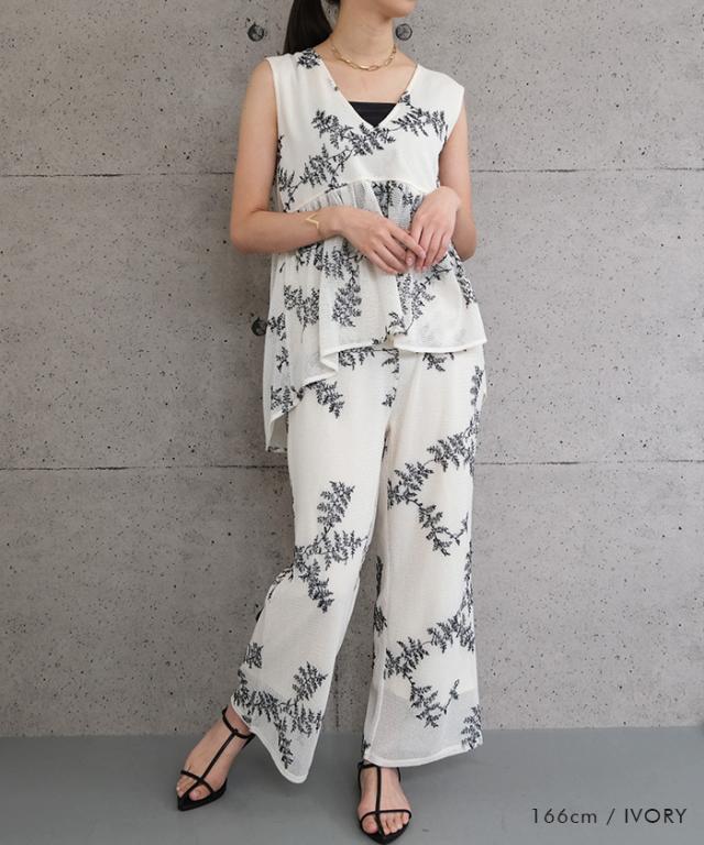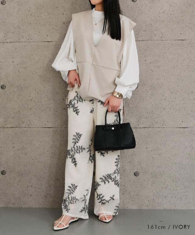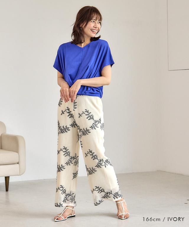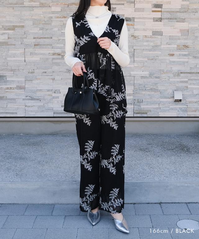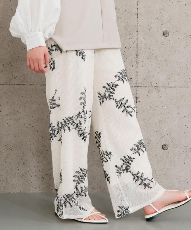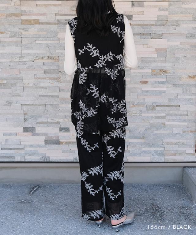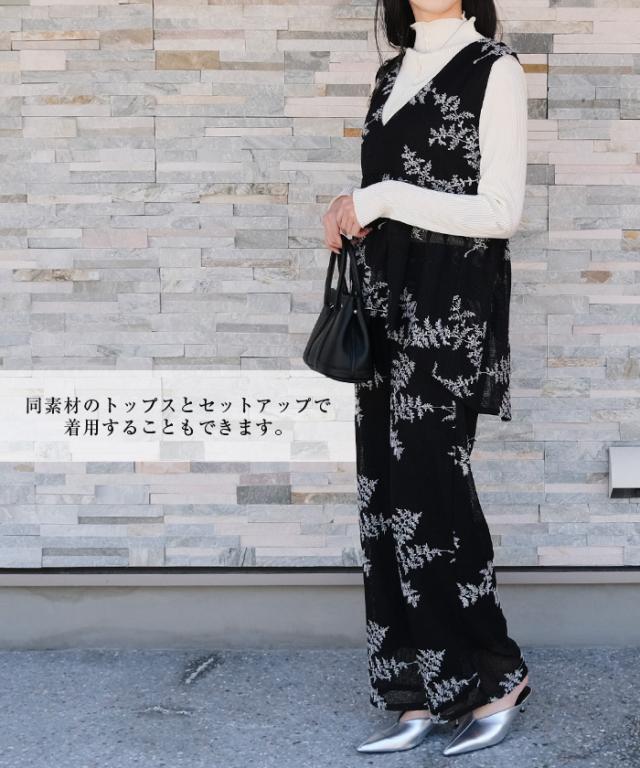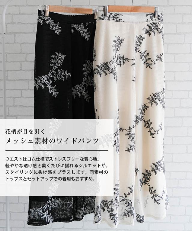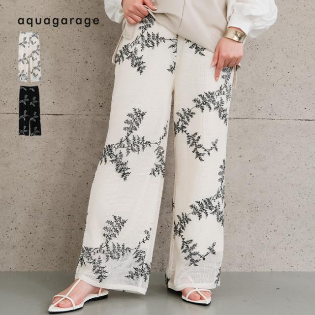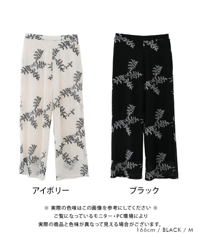 ≪ゆうメール便配送30・代引不可≫【セットアップ可】花柄刺繍メッシュワイドパンツ レディース 春 夏 秋 M アクアガレージ aquagarage