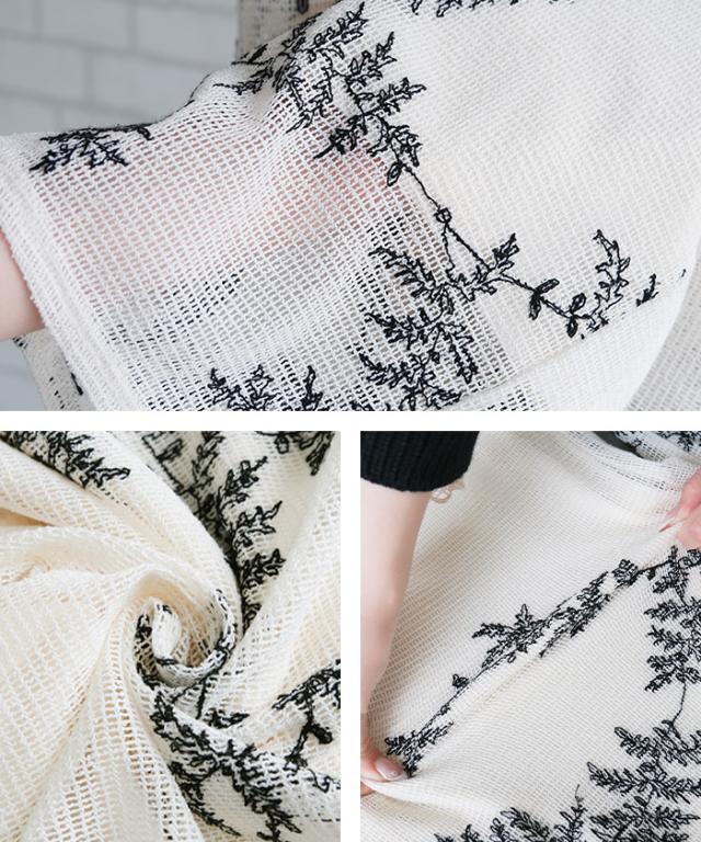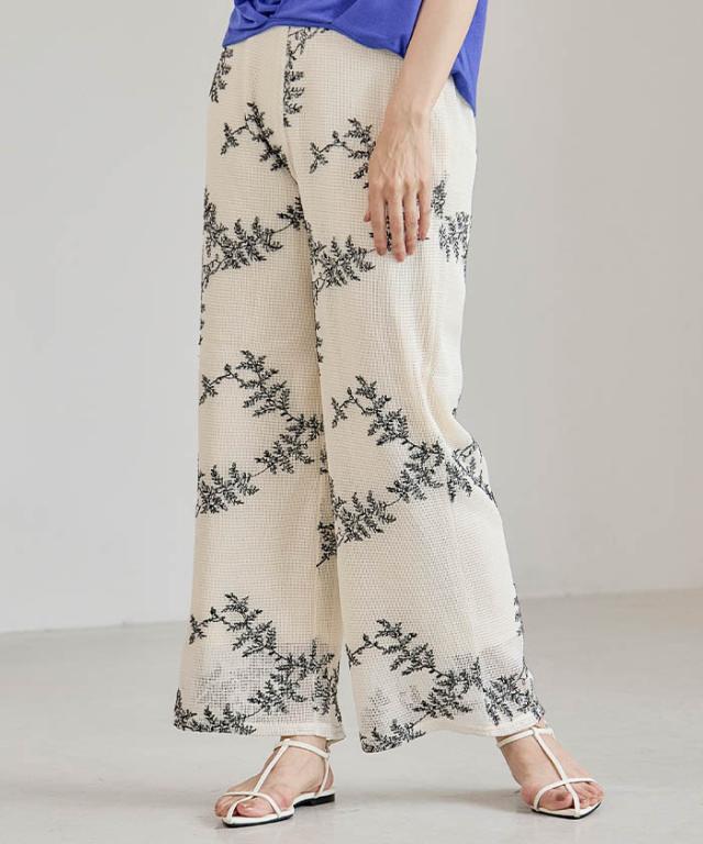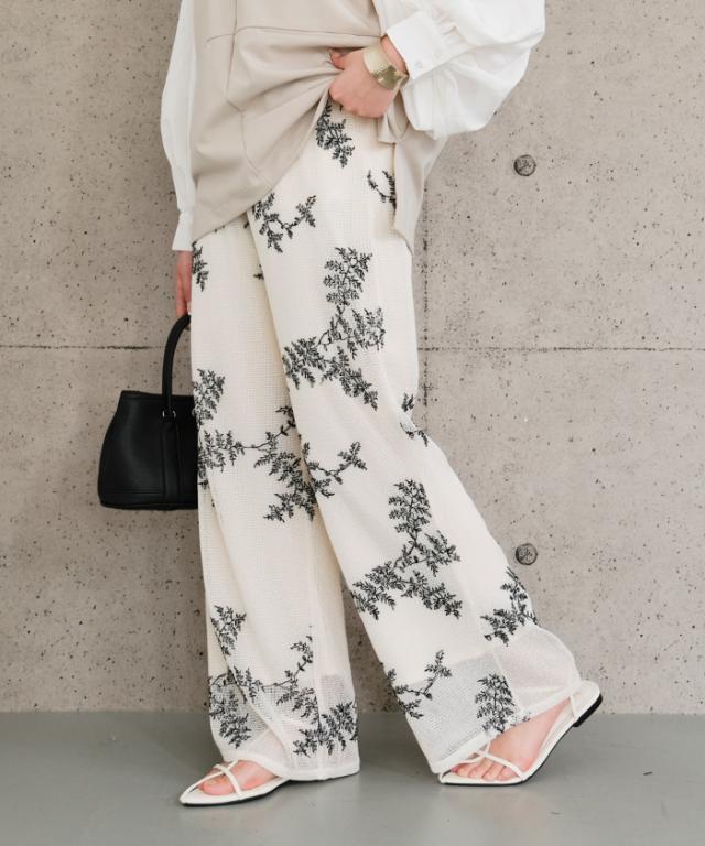 花柄が目を引くメッシュ素材のワイドパンツ