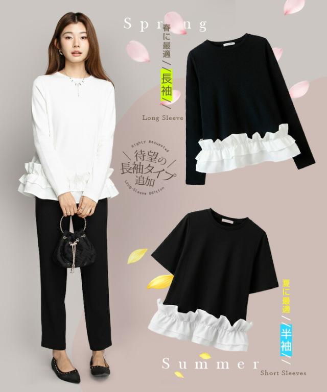 50%OFFクーポン対象!裾フリルブラウス シャツ レディース ダンボールニット 半袖 ペプラム見え プルオーバー シンプル 高見え 体型カバー きれいめ 大人カジュアル 春 夏 入園式 卒園式 オケージョン 通勤 【裾フリルブラウス】 春新作