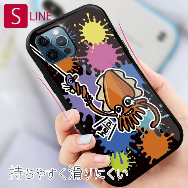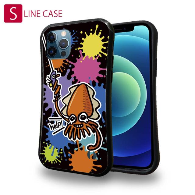 S-LINE ケース iPhone13 mini iPhone13 Pro Max iPhone12 Pro iPhone11 Pro iPhoneXs iPhoneXR Xperia 5 III Xperia 10 III Pixel 5a AQUOS sense6 釣り 魚 ルアー 釣りざんまい エギに釣られるアオリイカ_ビビッドカラー