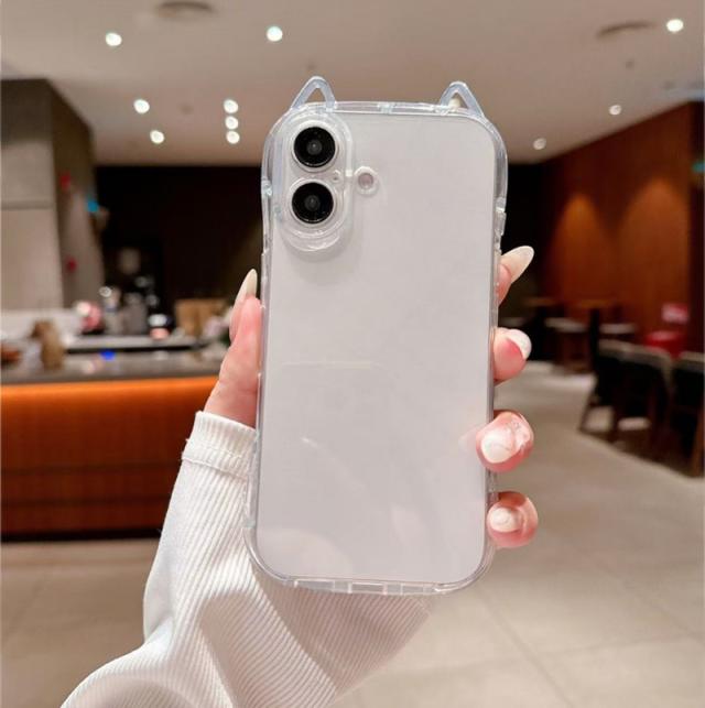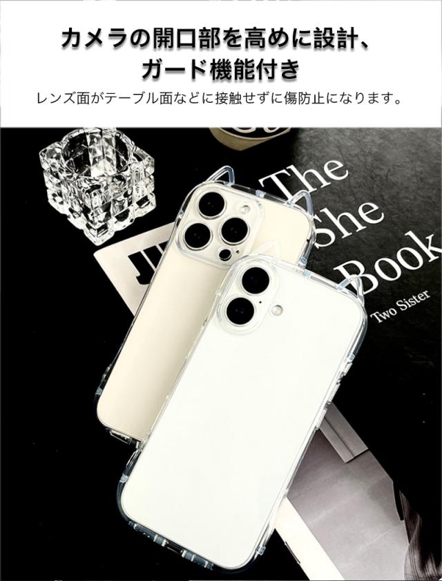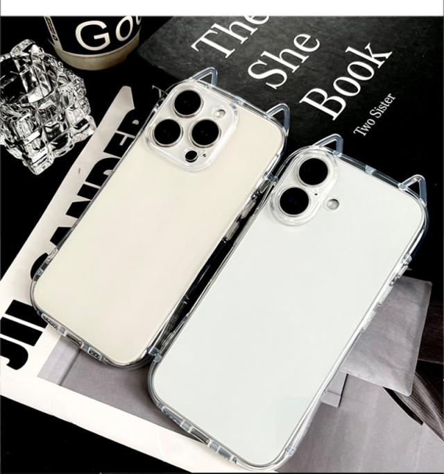 iPhone16 plus ケース 耐衝撃 iphone15 pro max ケース クリア iPhone14 ケース おしゃれ 猫耳 かわいい iPhone13 12 ケース 透明 アイフォン11 カバー 保護