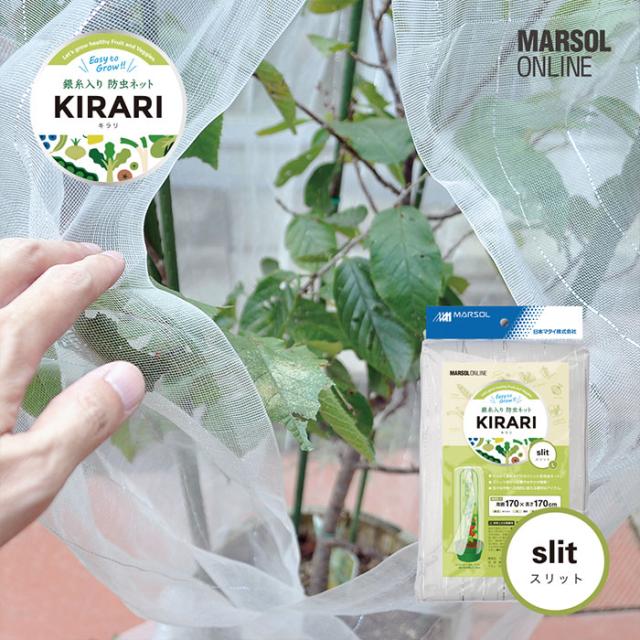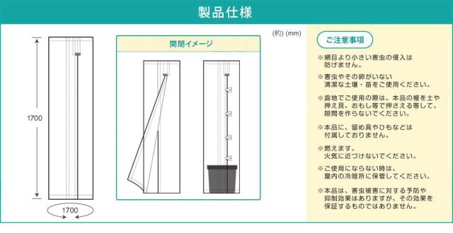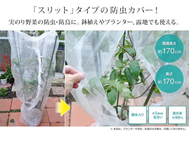 日本製 防虫ネット スリット 家庭菜園 約周囲170cm×高さ170cm(網目約1mm目) 白メッシュ 銀糸入り 透光率90% 虫よけネット ミニトマト レモン ブルーベリー 実山椒 山椒 大きいトマト オクラ ケール栽培 枝豆 ラズベリー みかん オリーブ