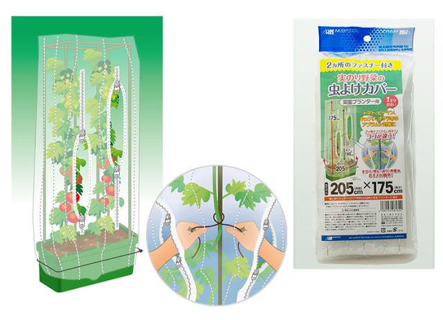 防虫ネット プランター用 実り野菜の虫よけカバー ファスナー付 周囲205cm×高さ175cm(網目約1mm目) 白メッシュ 銀糸入り 透光率90% 虫よけネット 農園芸用資材 ミニトマト レモン ブルーベリー きゅうり 枝豆 トマト 大葉 茄子 いちじく ハーブ オクラ