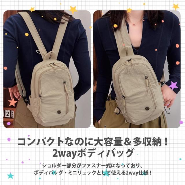 新作 撥水ウォッシュ加工2way多収納ファスナーボディバッグ レディース メンズ バッグ カバン ショルダーバッグ ボディバッグ リュック リュックサック 肩掛け 斜めがけ ミニ 小さめ 軽量 大容量 おしゃれ 大人